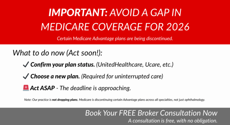 Recent updates from insurance carriers indicate that certain Medicare Advantage plans will be discontinued in select markets for 2026. This is a nationwide Medicare Advantage change that impacts the availability of these plans across all areas of medical care—not just eye care—so it may affect how your overall health coverage is administered in 2026. We…